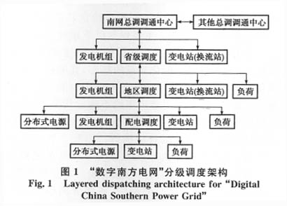 在上述定義的基礎(chǔ)上,本文給出一個狹義的定義:“數(shù)字南方電網(wǎng)”是以全局模型的形式對實際運行電網(wǎng)的真實特性的數(shù)字的、準確的、實時的再現(xiàn),這個全局模型以一組數(shù)字模型從不同層面和角度對整個系統(tǒng)的運行狀態(tài)進行了真實的刻畫,從而能夠根據(jù)調(diào)度決策的需要建立系統(tǒng)的實時分析平臺和超實時的仿真平臺,并最終實現(xiàn)電網(wǎng)調(diào)度決策的智能化和調(diào)度指令執(zhí)行的自動化。