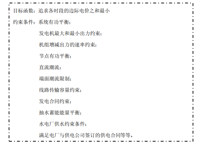 2、以短期電量市場中的總購電費用最低為目標,并考慮所有機組約束條件和電網(wǎng)約束條件,以保證經(jīng)濟規(guī)律和電網(wǎng)的運行規(guī)律通過有約束的優(yōu)化問題得到統(tǒng)一的解決。