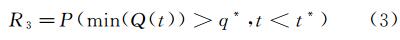 此指標(biāo)將魯棒性和迅速性分開衡量。通過設(shè)定系統(tǒng)功能在災(zāi)害中最低程度q*和最長恢復(fù)時間t*的容許值,將系統(tǒng)韌性指標(biāo)定義為系統(tǒng)滿足設(shè)定值要求的概率[35],即