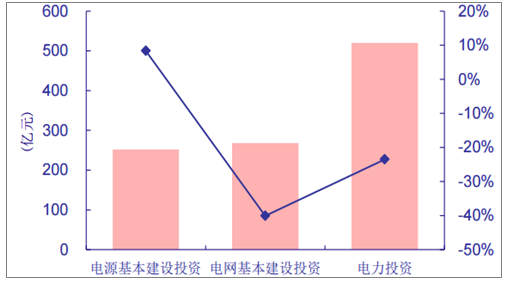 截止2月底,電源累計投資額252億元,同比上漲8.3%。其中,火電76億元,同比下滑2.3%,降幅收窄;水電53億元,同比下降7.6%,降幅持續(xù)擴大;風(fēng)電、核電分別同比增加14.5%、54.0%。電網(wǎng)投資268億元,同比降幅為40.1%。