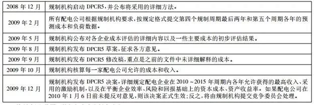 表2英國第5個(gè)配電價(jià)格控制周期(2010~2015年,DPCR5)過程