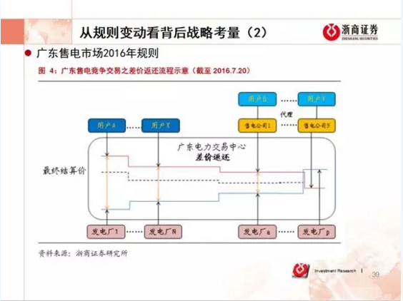 廣東經(jīng)信委后來對規(guī)則做了一些調(diào)整,各方反應不一、有利有弊,很難找出一個讓大家都開心的十全十美的方案。但是經(jīng)信委還是想提醒各方參與者要回歸到電改的本質(zhì),將來更重要的是要開展電力市場有序的競爭,終極目標則在于還原電力本身的商品屬性。廣東電改開展兩年多以來,粵電力、華潤、深圳能源、穗恒運等公司的排名比較靠前,因為這些公司本身有發(fā)電資源,在報價時雖然是售電部門去看報價,其實對于發(fā)電側(cè)報出的價格會比較有感覺的。展望未來,我們認為具有資源和服務優(yōu)勢的一些企業(yè)會脫穎而出,投資人該關注這些在發(fā)電資源和用戶資源這兩個領域有一些突出優(yōu)勢的公司。有些民營企業(yè)在布局相關業(yè)務時非常務實,轉(zhuǎn)到將來給客戶提供綜合能源的服務解決方案,我們認為也可以長期關注。值得一提的是最近有一些售電公司終于要退場了,這是個好事,說明市場已經(jīng)開始優(yōu)勝劣汰,而不是無腦進入。