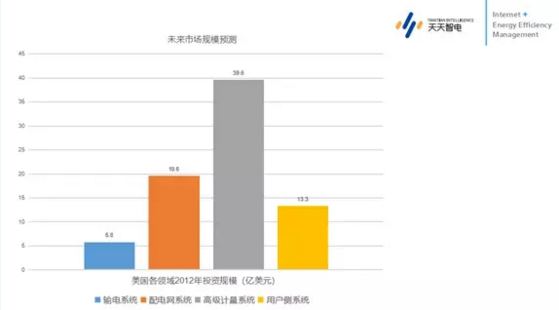 整體最主要的投資方向來自于高級計量系統(tǒng),包括電表通訊和電表計費系統(tǒng)。美國在2012年PJM地區(qū)的投資額約200多億人民幣,和國家電網(wǎng)對這個行業(yè)的投資水平差不多。去年國家電網(wǎng)的計量系統(tǒng)投資也在200億左右,這個市場規(guī)模在200億元左右。輸電系統(tǒng)和配電系統(tǒng)是不包括傳統(tǒng)硬件,單獨智能硬件也會有一個百億級市場存在。用戶側(cè)系統(tǒng),因為是給用戶做能量管理的一些系統(tǒng),而這類系統(tǒng)中國目前還沒有。
