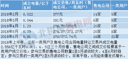 圖4江蘇2018年1-6月一類(lèi)用戶(hù)及售電公司合同電量轉(zhuǎn)讓交易情況