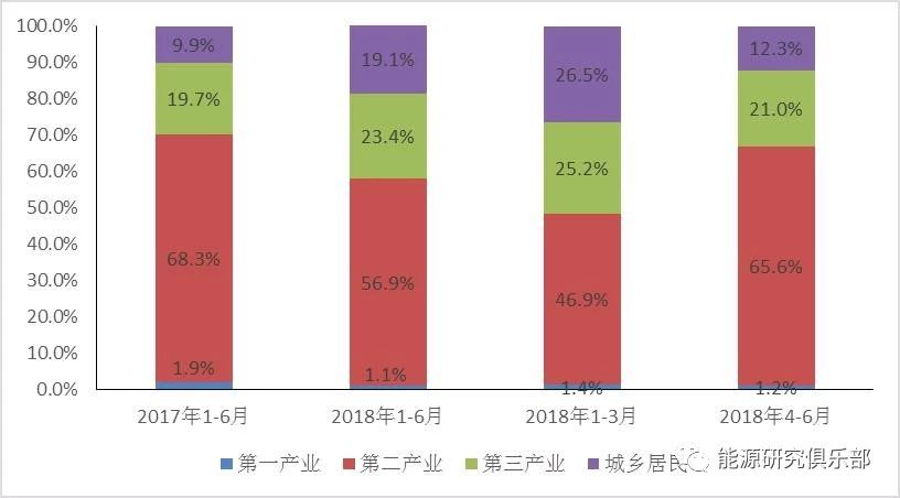 圖2 全社會(huì)用電增量分產(chǎn)業(yè)貢獻(xiàn)率
