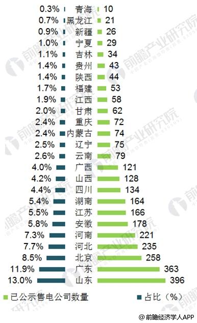 截至2017年底全國已公示售電公司3044家 山東數(shù)量最多