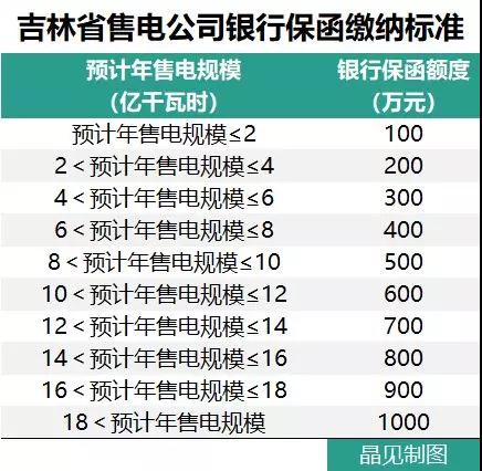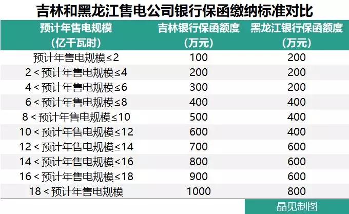 吉林省售電公司的銀行保函額度相比于黑龍江的看上去好像是少了。但是對比上相應的售電規(guī)模來看的話,吉林省的銀行保函額度就顯得“性價比”相對低了一點。
