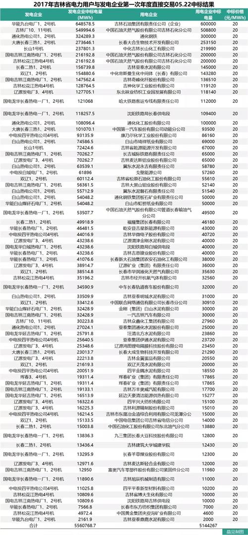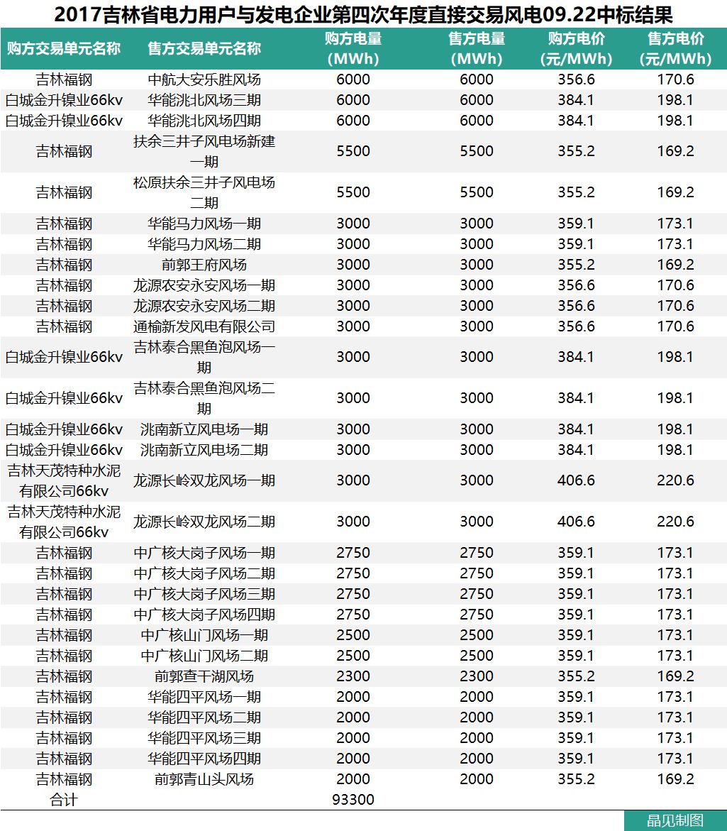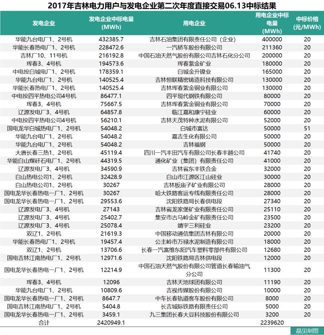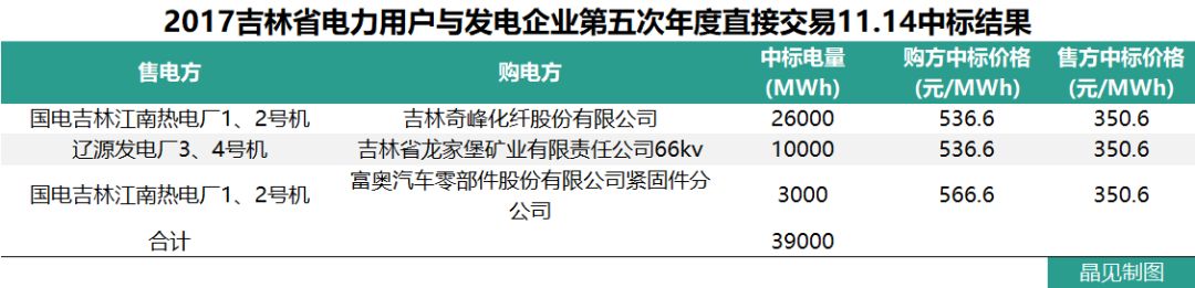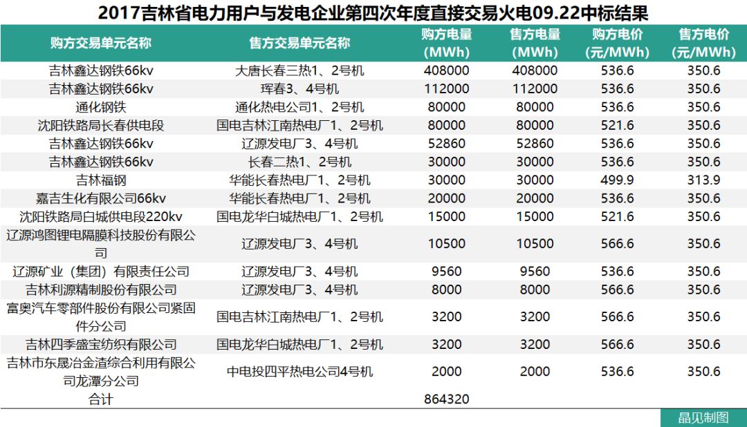 下面是晶見工作室整理的吉林省2017年直接交易情況:
