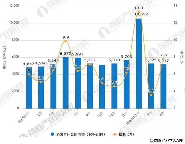 2017-2018年4月全國全社會用電量及增長情況