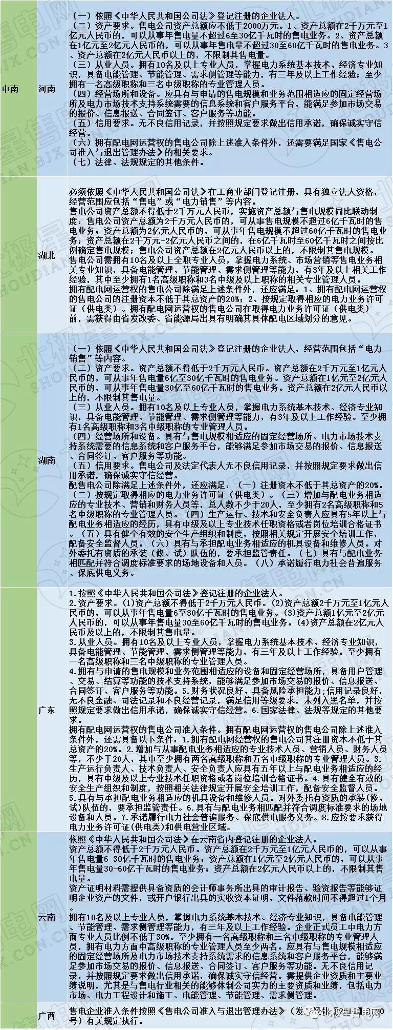 一起來(lái)看看各省市對(duì)售電公司的準(zhǔn)入都有哪些詳細(xì)規(guī)定。