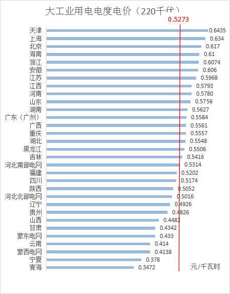 2. 北京以城區(qū)銷售電價制圖,上海以非夏季銷售電價制圖(上圖所示非夏季銷售電價均比夏季時期低0.042元/千瓦時),蒙東電網(wǎng)以赤峰通遼地區(qū)銷售電價制圖(未含呼倫貝爾電網(wǎng)和興安電網(wǎng)),云南大工業(yè)用電電度電價以平水期電價制圖;