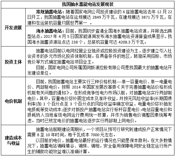 作為目前經濟、清潔的大規(guī)模儲能方式,抽水蓄能電站啟停靈活、反應迅速,具有調峰填谷、調頻、調相、緊急事故備用和黑啟動等多種功能(調峰性能要優(yōu)于傳統的煤電機組,是電網中具有很好調節(jié)能力的調峰裝置)。做好抽蓄電站建設和調度運行,有利于更好地利用新能源資源,有利于提升電力系統綜合效益。