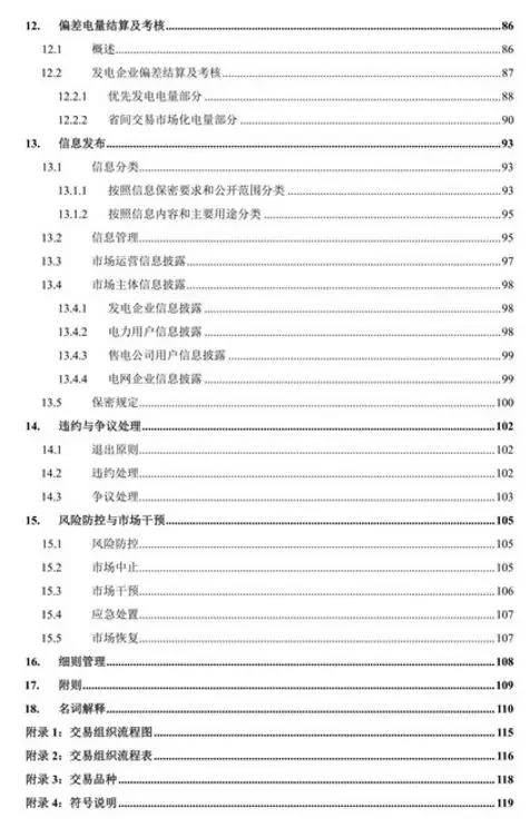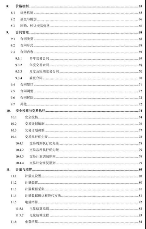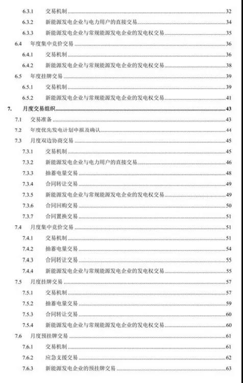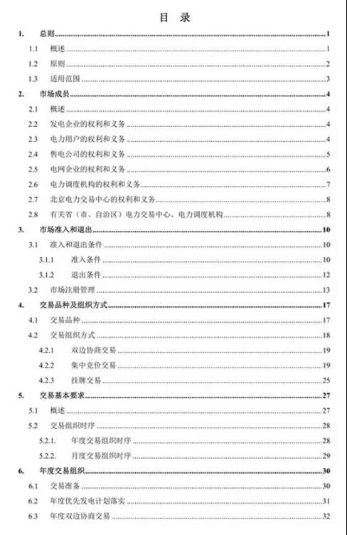 《實(shí)施細(xì)則》是目前最全面、最細(xì)致的市場(chǎng)交易規(guī)則,具有較強(qiáng)的操作性,光目錄就有足足4頁,全面規(guī)范了交易品種、組織方式和工作流程,對(duì)促進(jìn)清潔能源消納的省間外送交易、發(fā)電權(quán)交易等品種進(jìn)行了規(guī)定。