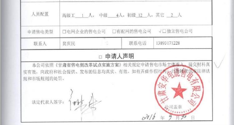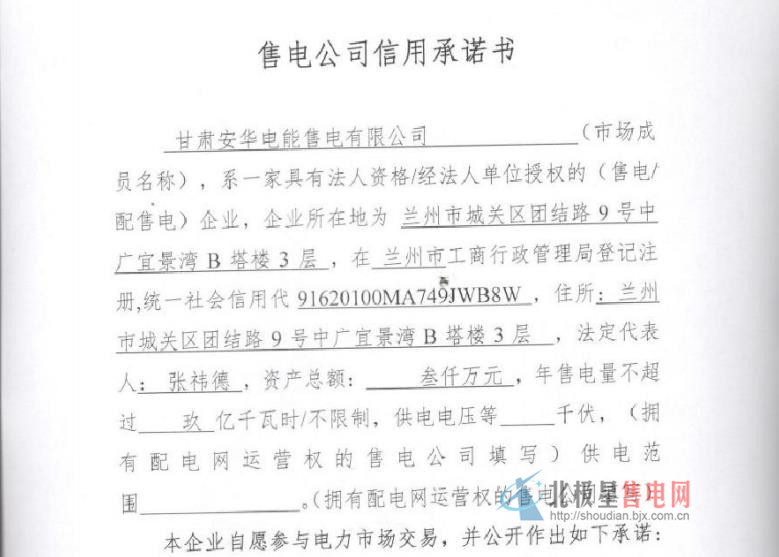 關(guān)于甘肅安華電能售電有限公司注冊成為電力自主交易市場主體相關(guān)信息的公示