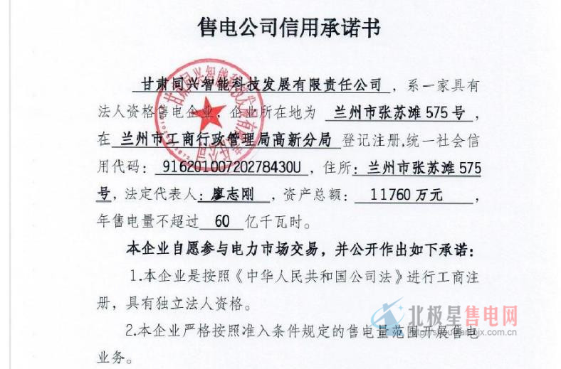 關于甘肅同興智能科技發(fā)展有限責任公司注冊成為電力自主交易市場主體相關信息的公示