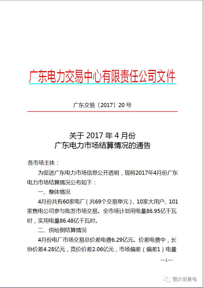 廣東電力交易中心發(fā)布了《關(guān)于2017年4月份廣東電力市場結(jié)算情況的通告》,總體偏差率僅-0 54%,偏差預(yù)測漸趨準(zhǔn)確。(文章來源: 螢火蟲售電 ID:shining_energy 作者: 螢火蟲)1、整體情況4月共有60家電廠(共