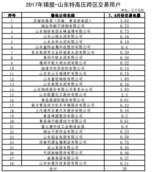 附件2:2017年錫盟-山東特高壓跨區(qū)交易用戶名單