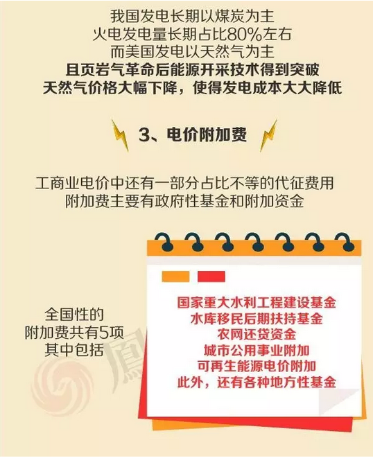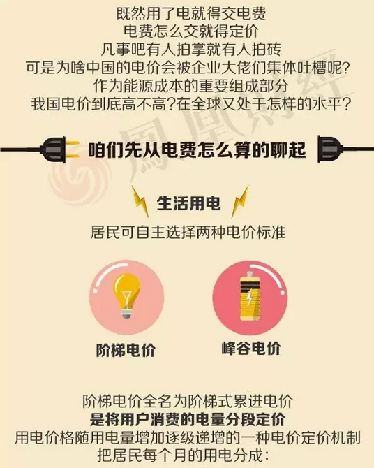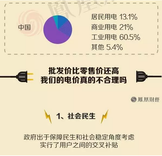 為什么企業(yè)家紛紛認為中國的電價高?中國的電價高,高在哪?其實中國的居民電價不算特別高,工商業(yè)電價比較高。請看鳳凰財經制作的圖表: