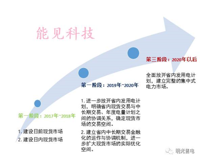 第三階段,全面放開(kāi)省內(nèi)發(fā)用電計(jì)劃,建立完整的集中式電力市場(chǎng)