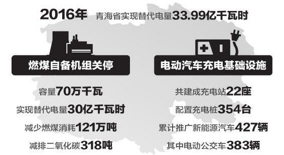 截至2016年末,青海省累計(jì)完成電能替代項(xiàng)目243個(gè),實(shí)現(xiàn)替代電量33.99億千瓦時(shí),累計(jì)減少二氧化碳排放量360萬(wàn)噸。