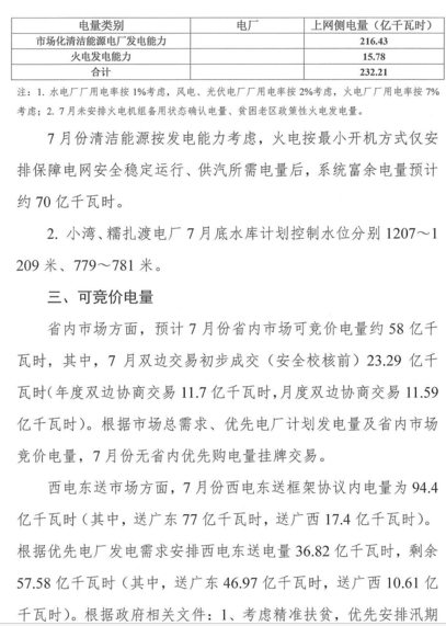 西電東送市場(chǎng):7月份西電東送框架協(xié)議內(nèi)電量為94.4億千瓦時(shí)(其中,送廣東77億千瓦時(shí),送廣西17.43億千瓦時(shí))。