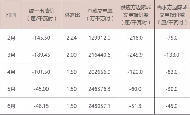 市場供需比也從之前的1.5驟然降低至1.2,按照以往的情況,需求側(cè)基本上是全電量參與申報,而發(fā)電側(cè)則經(jīng)常有部分電廠放棄申報,實際的供需比會比交易前公告的供需比要小一些。