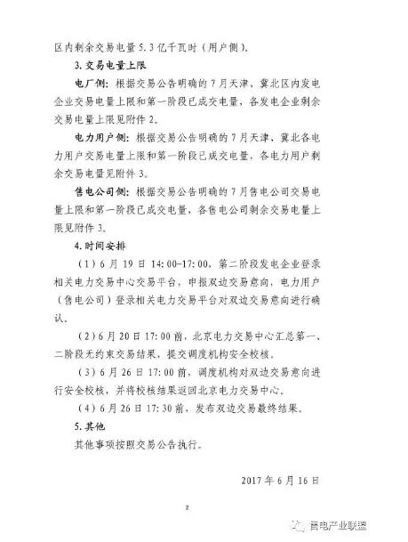 2017年7月京津唐地區(qū)電力直接交易第一階段無(wú)約束交易結(jié)果公布