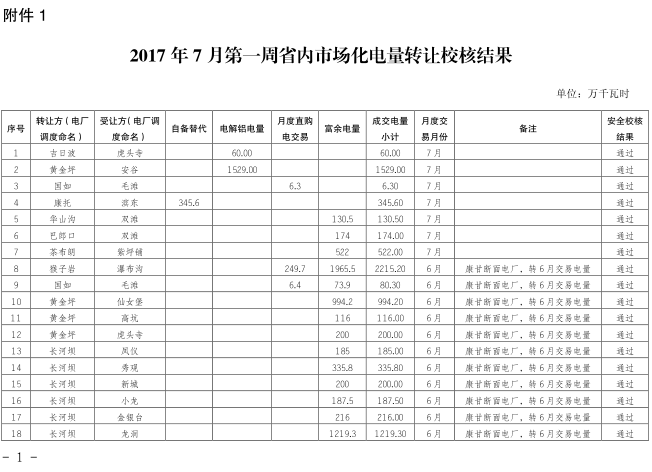 7月第一周(截止7月6日),四川電力交易中心共收到各發(fā)電企業(yè)7月省內(nèi)市場化電量及外送計(jì)劃轉(zhuǎn)讓申請24筆,申報(bào)電量10032.7萬千瓦時(shí)。其中省內(nèi)市場化轉(zhuǎn)讓24筆,實(shí)際成交24筆,成交電量10032.7萬千瓦時(shí),外送電轉(zhuǎn)讓0筆。