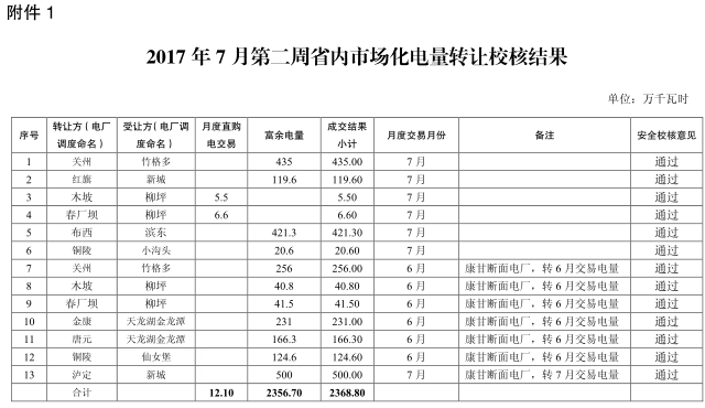 四川7月前兩周市場化電量轉(zhuǎn)讓結(jié)果 已成交電量30686.6萬千瓦時(shí)