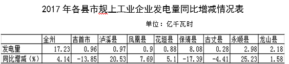 2017年湘西州電力生產(chǎn)量情況簡(jiǎn)析