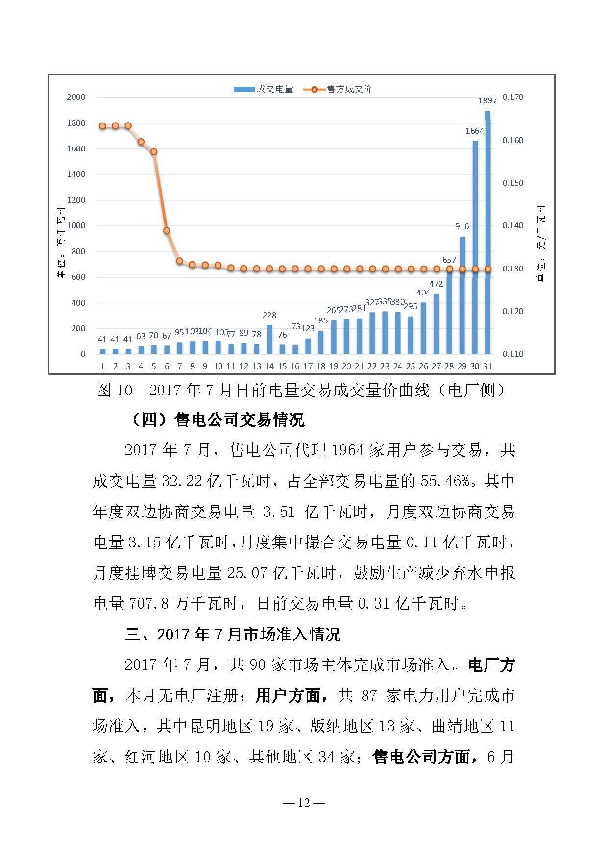 云南7月電力交易月報(bào) 省內(nèi)市場成交電量58.10億千瓦時