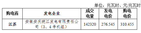 在本次交易中,江蘇省電力公司購電量為34.965億千瓦時,平均購電報價為317.4元/兆瓦時。