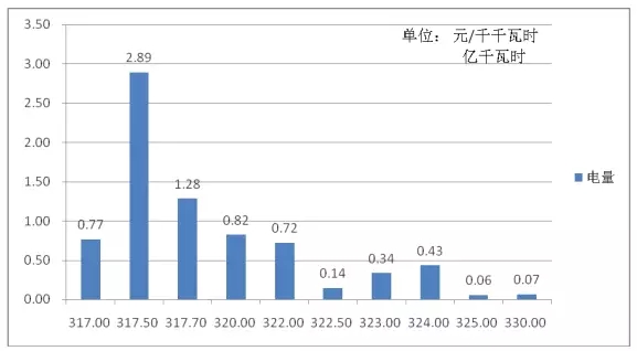 區(qū)外11家發(fā)電企業(yè)參與交易,成交均價為319.07元/千千瓦時,成交價最高為323.82元/千千瓦時,成交價最低為317.14元/千千瓦時。區(qū)外電廠成交電量電價區(qū)間如下: