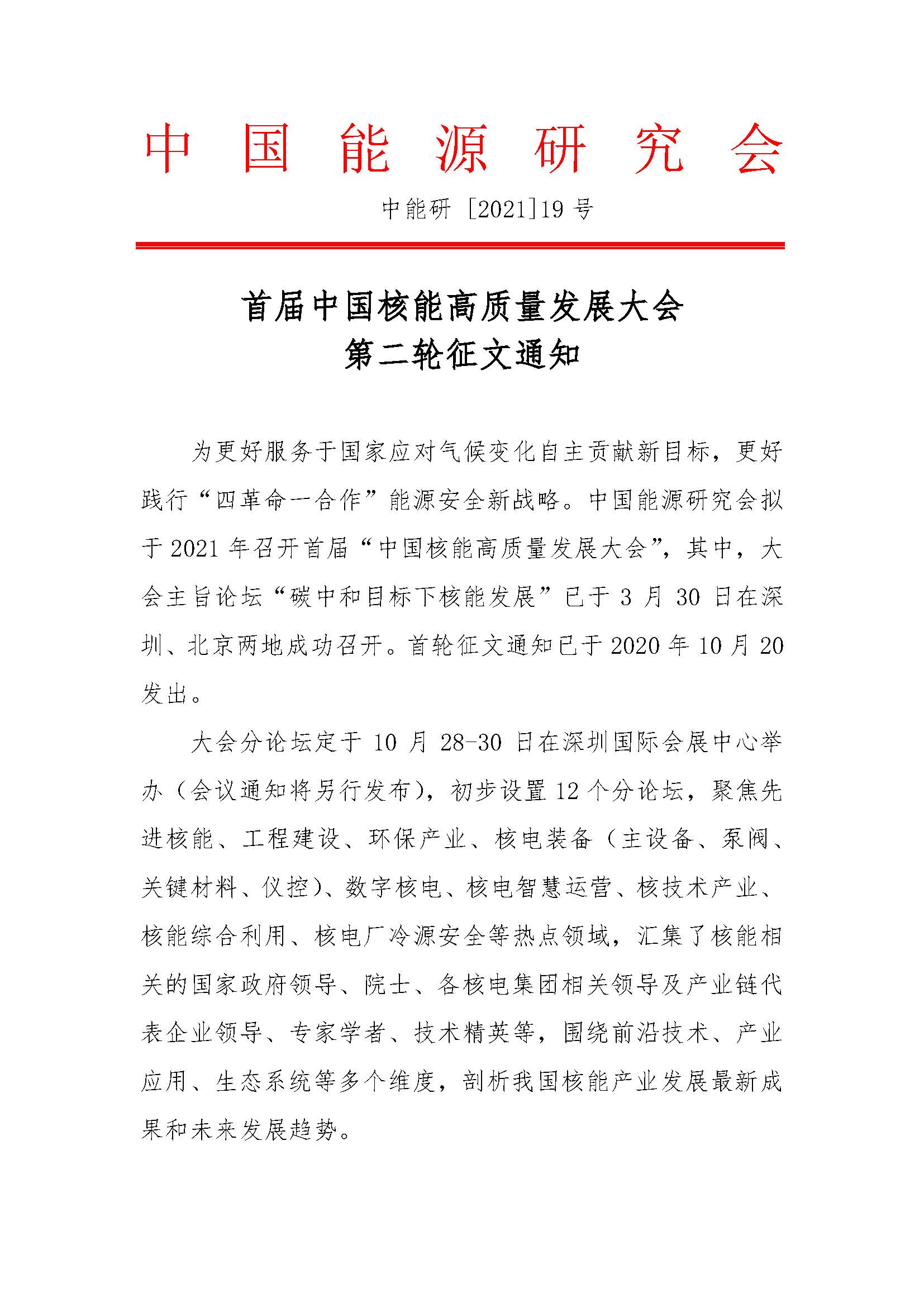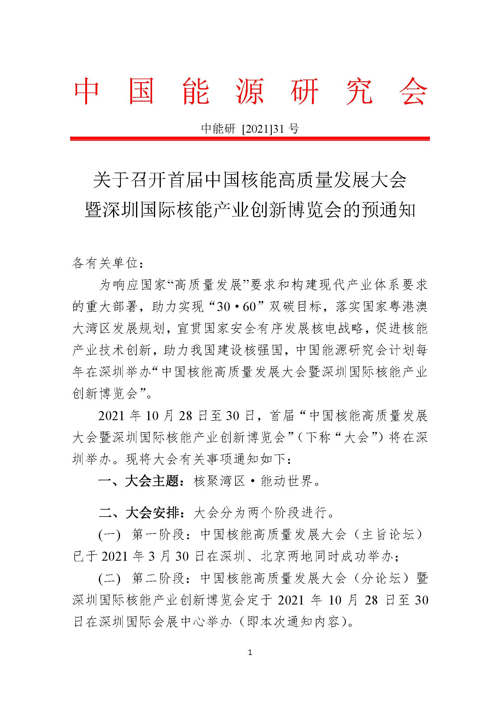 關(guān)于召開(kāi)首屆中國(guó)核能高質(zhì)量發(fā)展大會(huì)暨深圳國(guó)際核能產(chǎn)業(yè)創(chuàng)新博覽會(huì)的預(yù)通知