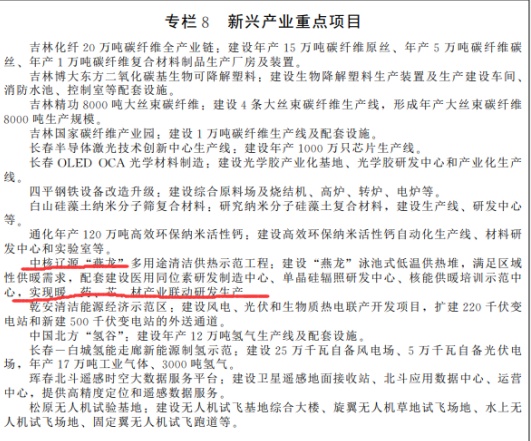 2021年4月1日,《吉林省國民經(jīng)濟(jì)和社會發(fā)展第十四個五年規(guī)劃和2035年遠(yuǎn)景目標(biāo)綱要》(簡稱《吉林省“十四五”規(guī)劃》)下發(fā),提出穩(wěn)妥實施核能供熱示范工程。