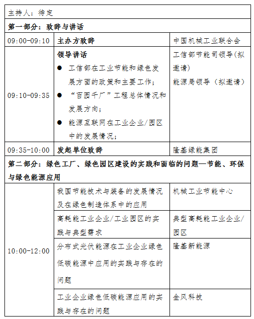 在此背景下,中國機械工業(yè)聯(lián)合會偕同隆基綠能集團等知名企業(yè)和研究機構(gòu),創(chuàng)造性的提出:在工業(yè)企業(yè)/工業(yè)園區(qū)中,以智慧互聯(lián)為技術(shù)主線,綜合應用低碳分布式能源和節(jié)能技術(shù),加快實施能源利用高效低碳化改造,為傳統(tǒng)工業(yè)企業(yè)/園區(qū)注入綠色能源基因,推動“百園千廠”工程建設,助力我國能源革命。為此我會與隆基綠能集團擬于2017年11月26日在京召開“百園千廠”綠色低碳能源利用推進會議暨“綠色工業(yè)˙綠能中國”綠色園區(qū)建設系列活動啟動會,會議主要內(nèi)容如下: