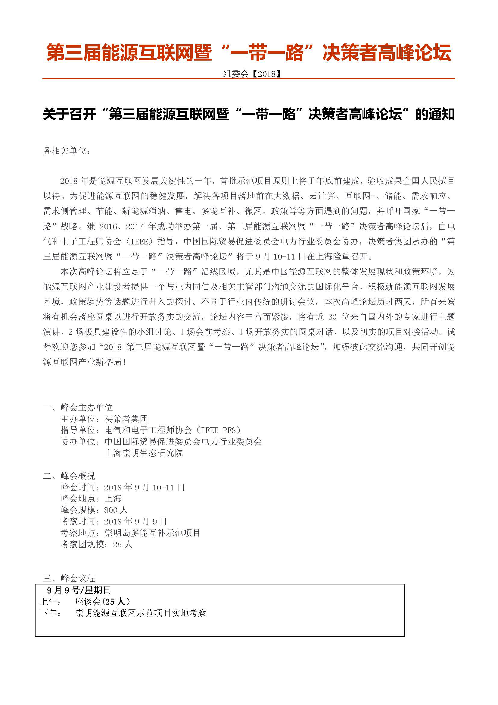 2018第三屆能源互聯(lián)網(wǎng)暨一帶一路決策者高峰論壇(EIS) 9月將在上海舉行