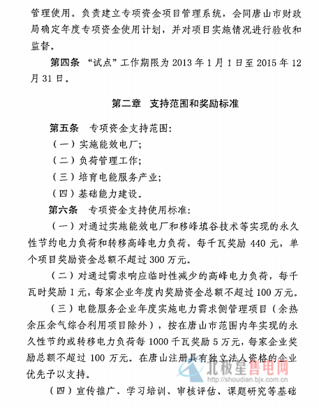 唐山市電力需求側(cè)管理城市試點(diǎn)政策一覽