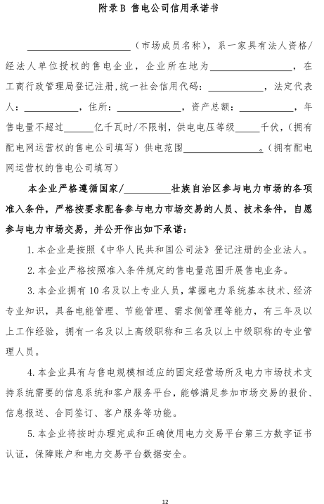 廣西電力交易中心日前發(fā)布了《廣西電力市場售電公司注冊規(guī)范(試行)》的通知,詳情如下:關于發(fā)布《廣西電力市場售電公司注冊規(guī)范(試行)》的通知各相關市場主體:為進一步規(guī)范廣西電力市場售電公司的注冊管理,根據