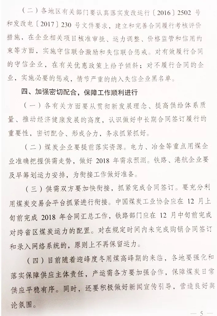 近日,國(guó)家發(fā)改委印發(fā)了《國(guó)家發(fā)展改革委辦公廳關(guān)于推進(jìn)2018年煤炭中長(zhǎng)期合同簽訂履行工作的通知》,文件要求充分認(rèn)識(shí)煤炭中長(zhǎng)期合同的重要作用,進(jìn)一步創(chuàng)新方式推動(dòng)建立長(zhǎng)期穩(wěn)定合作關(guān)系,包括:支持企業(yè)自主簽
