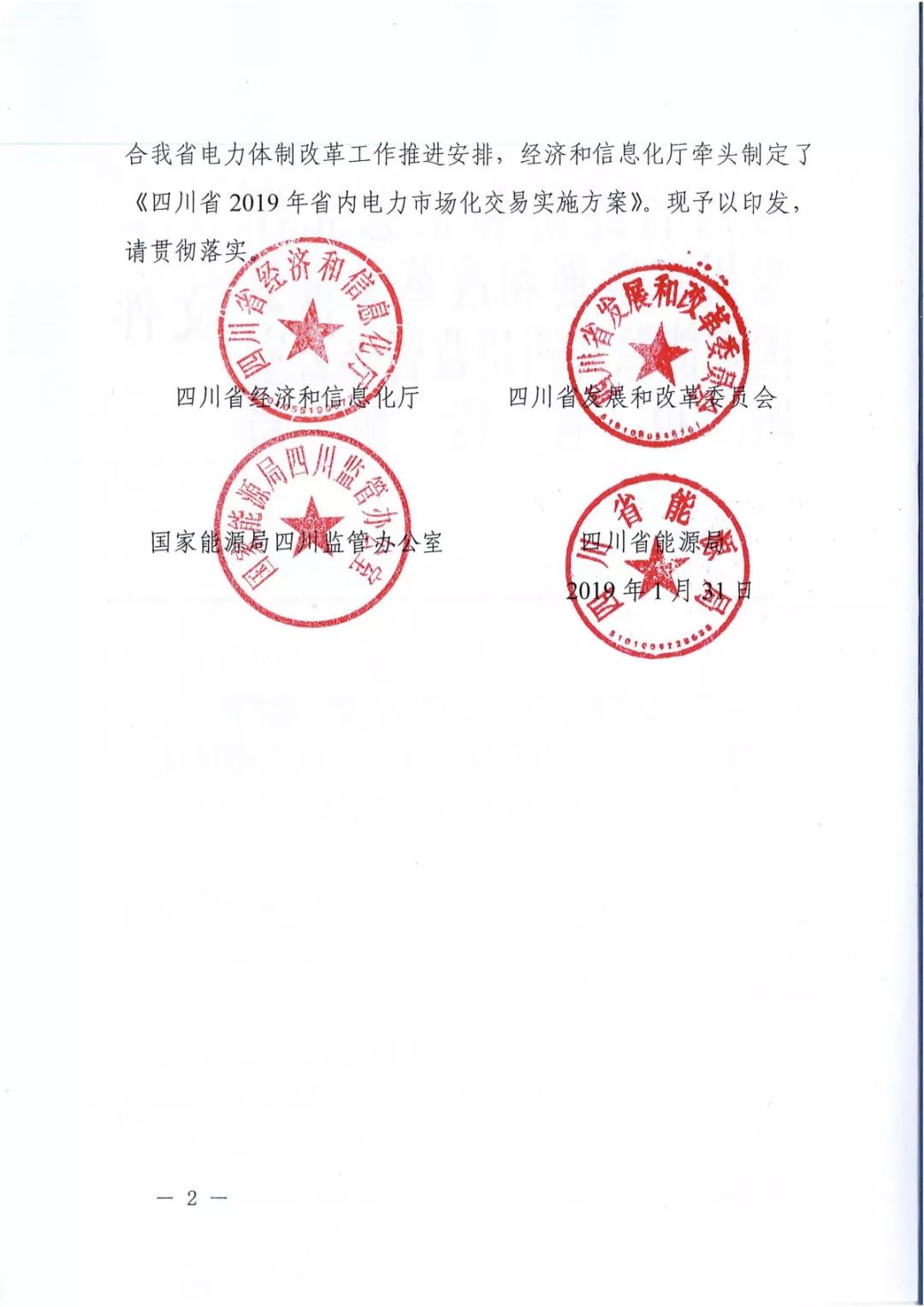 四川省經(jīng)濟(jì)和信息化廳、四川省發(fā)展和改革委員會、國家能源局四川監(jiān)管辦公室、四川省能源局4部門日前聯(lián)合下發(fā)關(guān)于印發(fā)《四川省2019年省內(nèi)電力市場化交易實(shí)施方案》的通知。