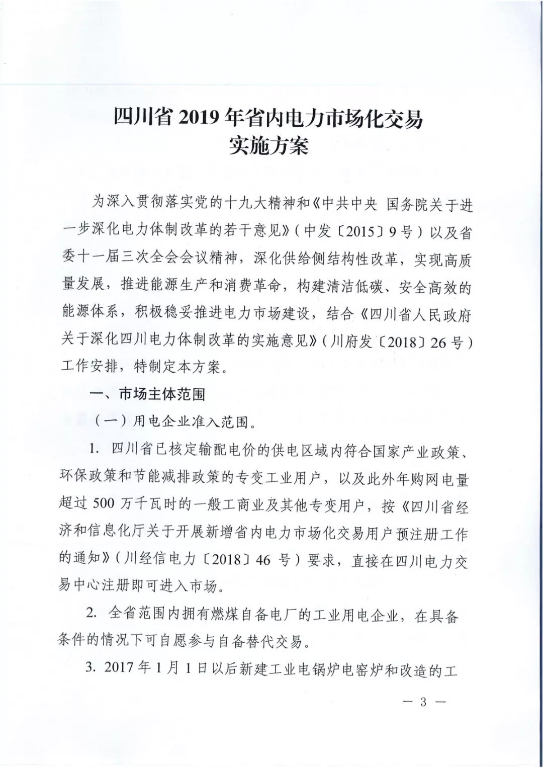 專變工業(yè)用戶全面放開!四川省2019年省內(nèi)電力市場化交易實(shí)施方案印發(fā)