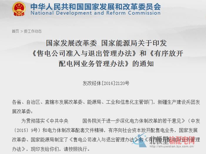 發(fā)改委、能源局印發(fā)《有序放開配電網(wǎng)業(yè)務(wù)管理辦法》