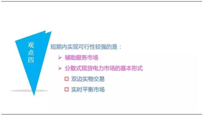 4、現(xiàn)階段,實現(xiàn)分散式現(xiàn)貨力市場--“雙邊實物交易+(雙邊實物交易之外電力)現(xiàn)貨”、輔助服務市場可行性更強;