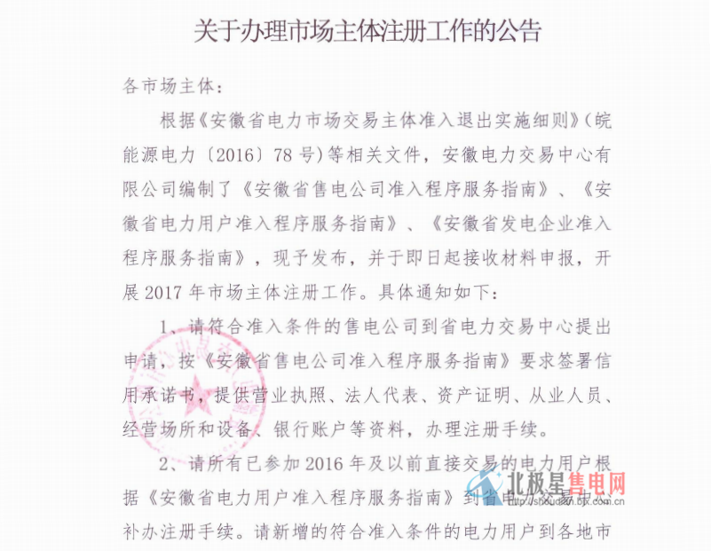 安徽電力發(fā)布關(guān)于辦理市場主體注冊工作的公告,一起來看公告全文: