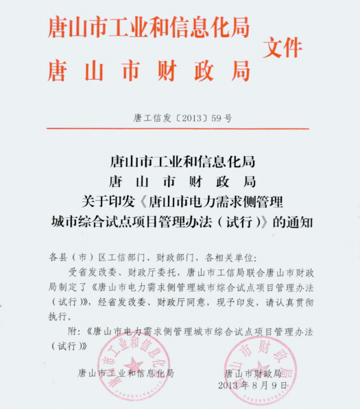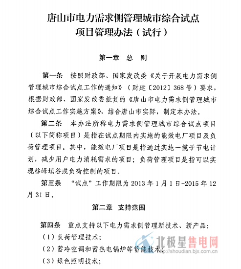 2、唐山市電力需求側(cè)管理城市綜合試點項目管理辦法(試行)