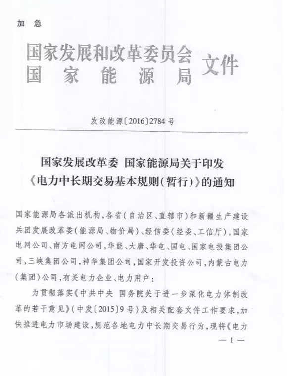 電力中長(zhǎng)期交易基本規(guī)則(暫行)