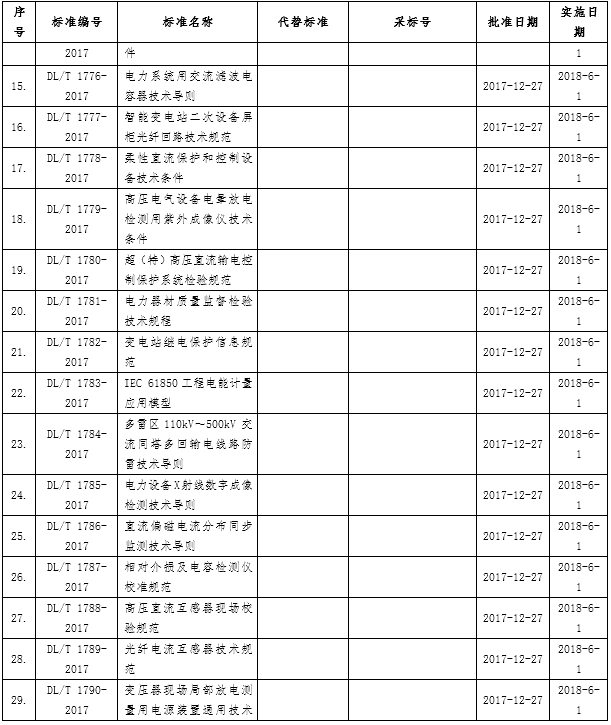 今日,國家能源局發(fā)布2017年第13號(hào)公告,批準(zhǔn)80項(xiàng)行業(yè)標(biāo)準(zhǔn),其中電力標(biāo)37項(xiàng),全文如下:
