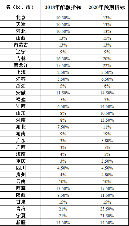 各省級(jí)行政區(qū)域2018年非水電可再生能源電力配額指標(biāo)