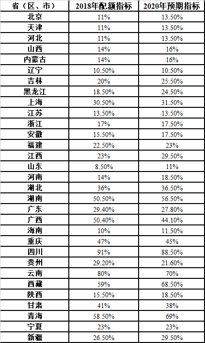 2、各省級(jí)行政區(qū)域2018、2020年非水電配額指標(biāo)